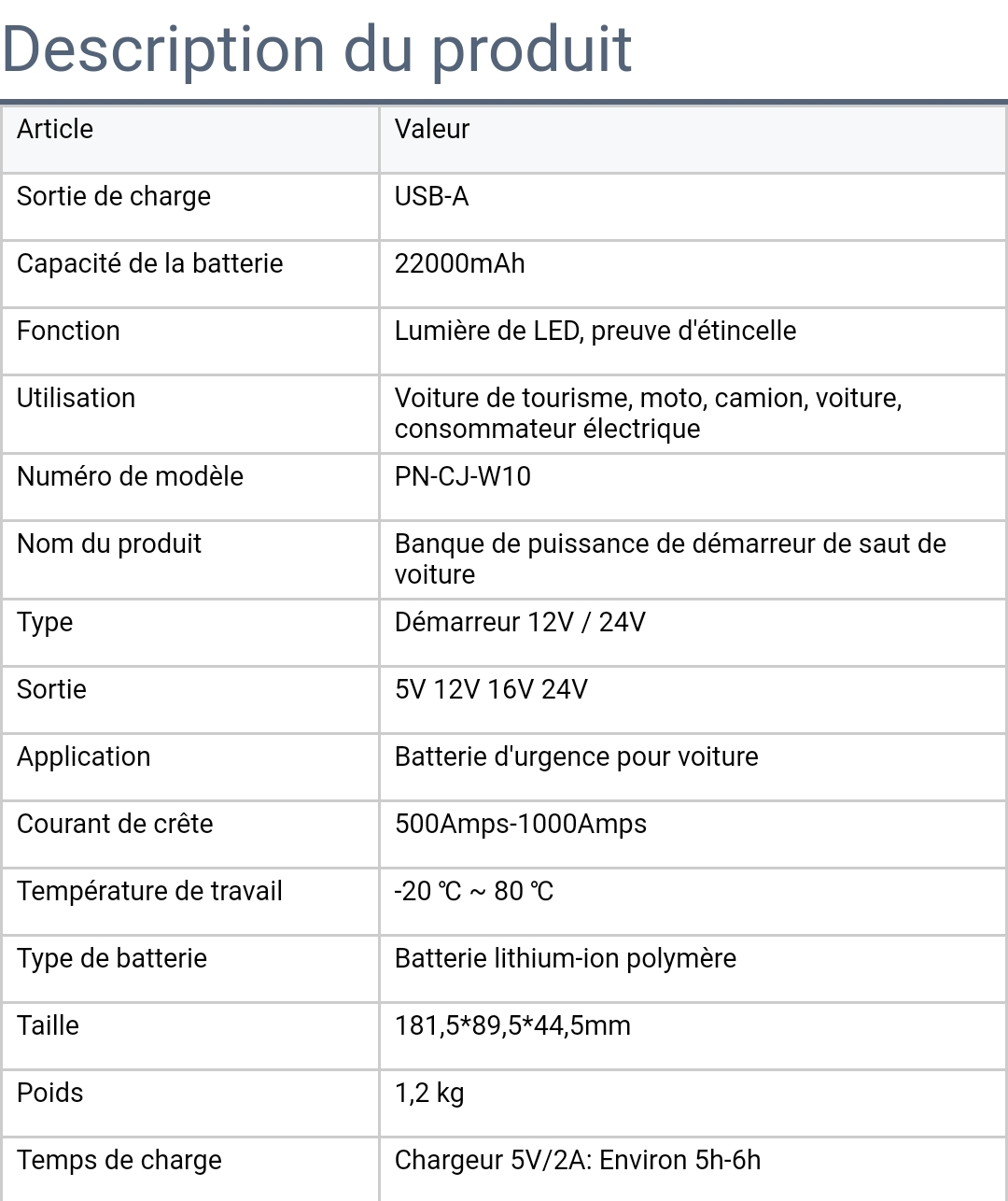 Boosters démarreur d'urgence de véhicule 12 volts. Très efficace et durable. Utile en cas de décharge de la batterie de votre véhicule.