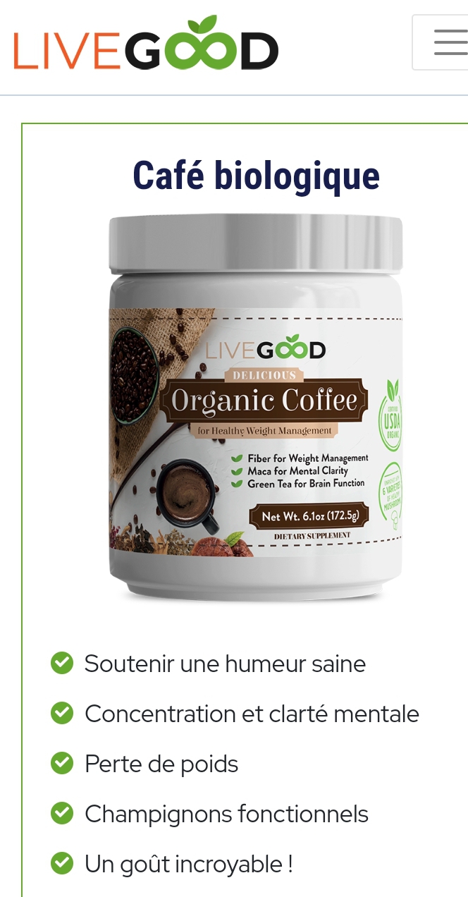 Non seulement le café biologique LiveGood combine des ingrédients de la plus haute qualité provenant des endroits les plus propres, les plus purs et les plus luxuriants de la planète, mais c'est le PREMIER et le SEUL café enrichi de fibres saines pour réduire la faim, formulé avec de la maca pour aider à soutenir l'apprentissage et la mémoire tout en s'améliorant. humeur, ainsi que du thé vert pour favoriser un fonctionnement cérébral sain et stimuler la combustion des graisses, ET des adaptogènes sous la forme de 6 des champignons les plus puissants au monde pour soulager le stress, soutenir un corps sain et vous aider à vous sentir bien ! Aucun café sur la planète n'offre autant d'avantages que le café de gestion du poids biologique LiveGood Healthy aux champignons 😊