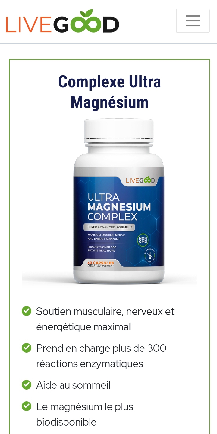 Nous avons formulé le complexe Ultra Magnésium de LiveGood avec les formes de magnésium les plus biodisponibles dont la plupart des gens ne consomment pas suffisamment dans leur alimentation ou dans d'autres suppléments ; Glycinate de magnésium et gluconate de magnésium.