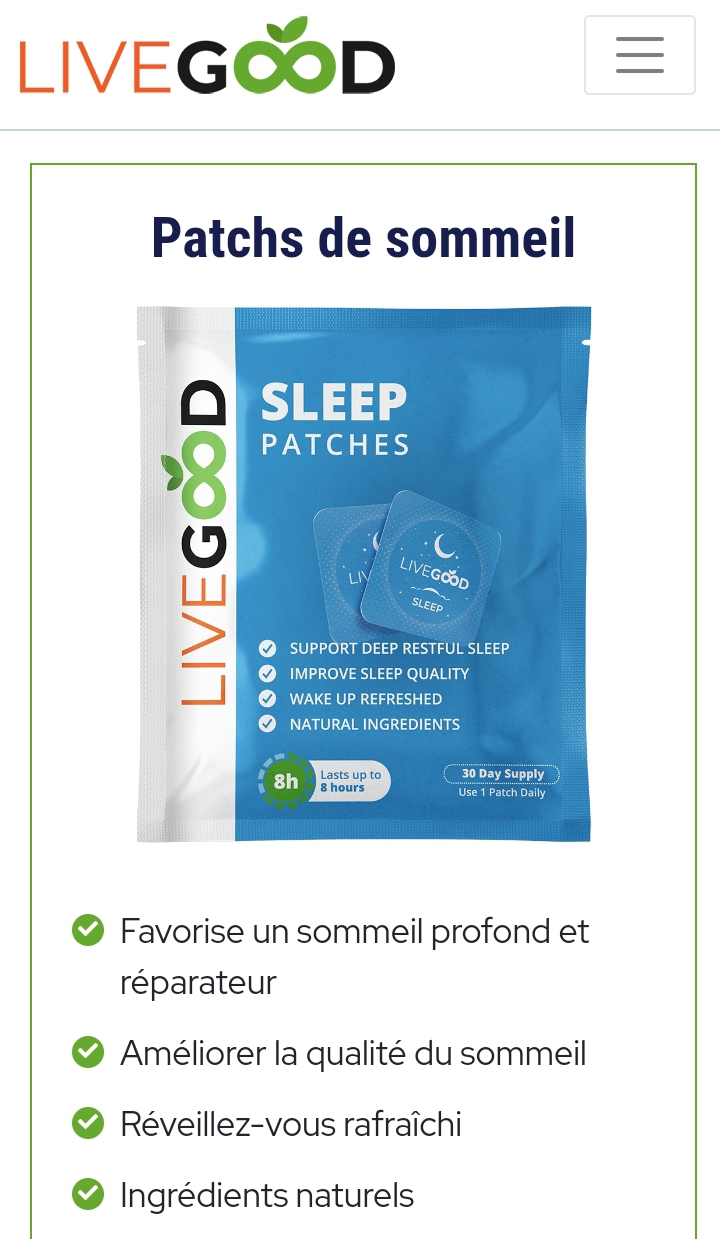 Les patchs LiveGood Healthy Sleep fournissent un mélange unique d'ingrédients naturels, sains et hautement absorbables directement à travers la peau et dans la circulation sanguine pour fournir un sommeil rapide et durable, profond, réparateur et de haute qualité.